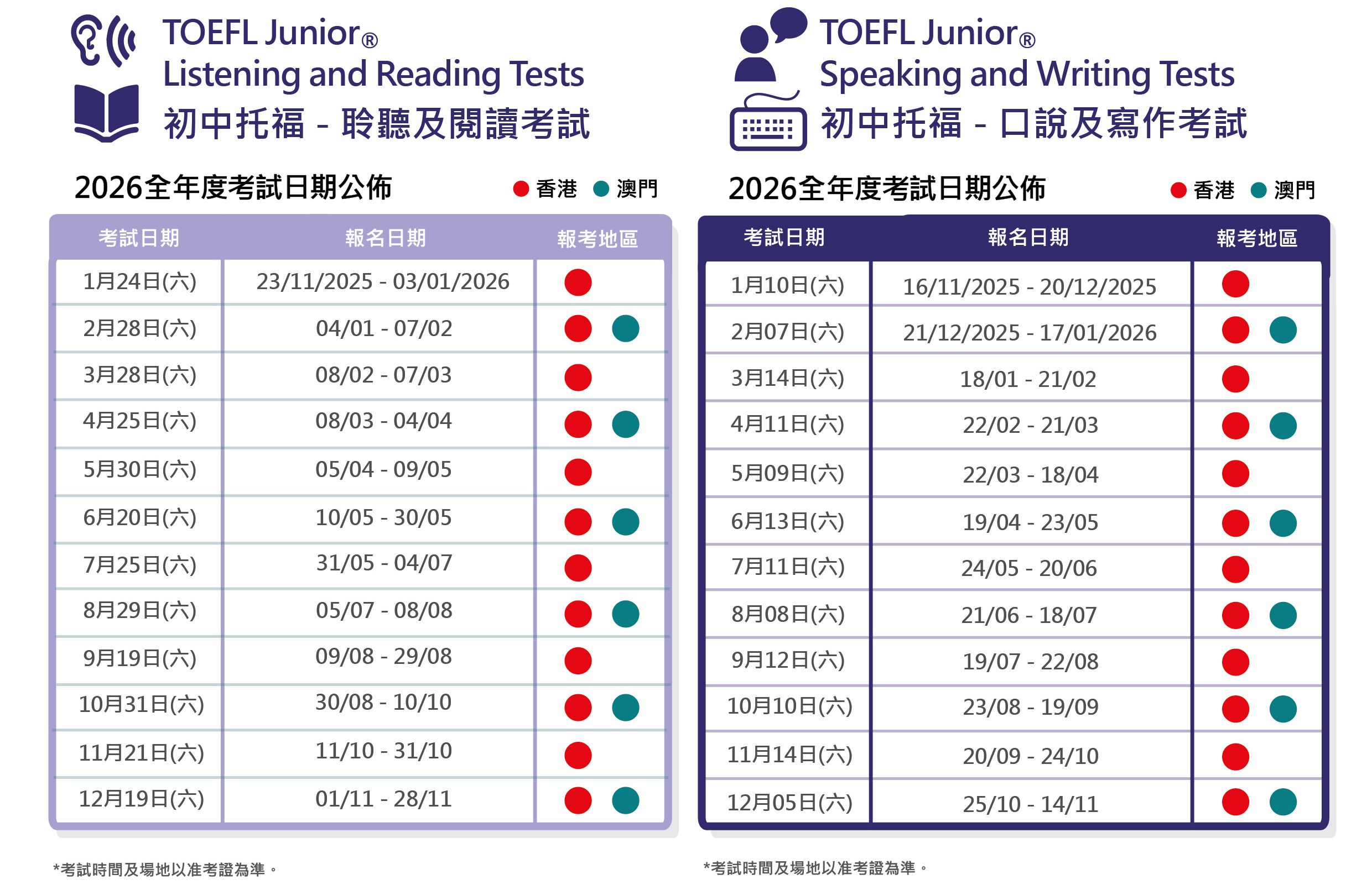 • TOEFL Junior 標准考試由 ETS 或當地的 ETS Preferred Network 組織進行評分