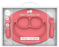 • Mini Mat 矽膠迷你笑臉餐碟+餐具套裝 - 珊瑚